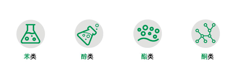 甲苯、二甲苯、甲醛、乙(yǐ)酸丁醋、醇類及(jí)酮類為主。