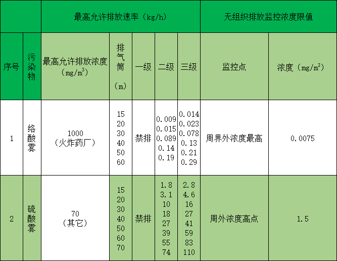 酸霧廢氣排放標準執行《大氣汙染物綜合(hé)排放標準》(GB16297-1996) ,執行標準如下: